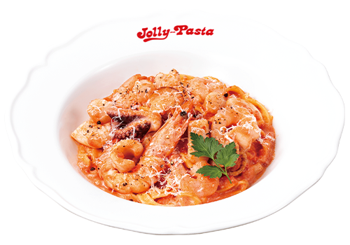 まろやかな酸味のトマトクリームソースがフェットチーネによく絡む、海の幸たっぷりな一皿です。