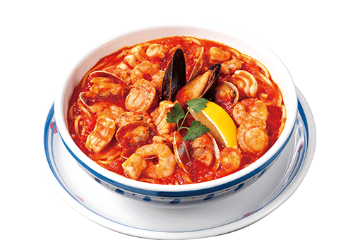 エビ、イカ、あさりなど、魚介の旨みがとけ込んだスープパスタ。